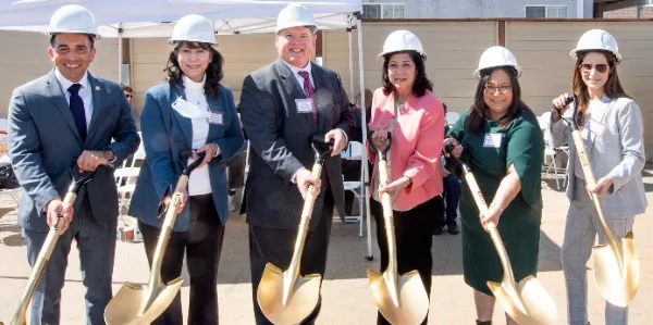 Photo: Hon. E. Martin Estrada, LAFLA director Yolanda Arias, capital campaign chair Jim Burgess, Sup. Hilda Solis, Silvia Argueta, and board chair emerita Amy Lerner-Hill.